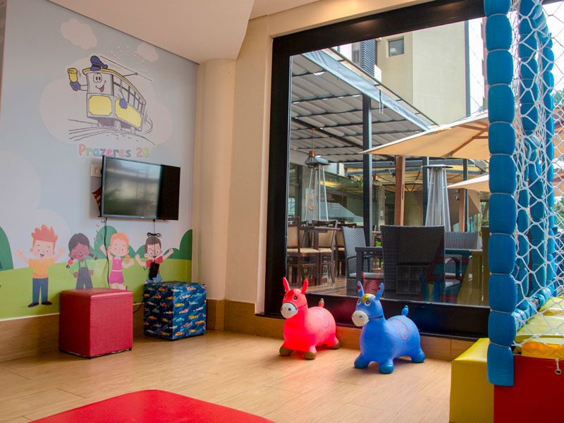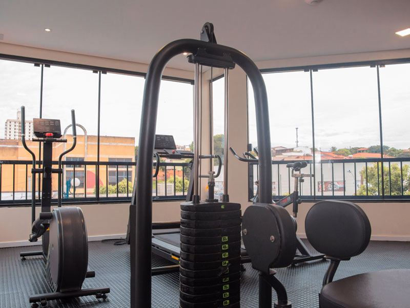 Nossa estrutura é completa para uma hospedagem inesquecível e conta com piscina externa, academia completa, espaço kids,